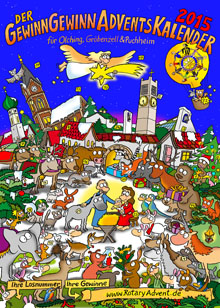Zum 1. Mal nach jahrelangem großen Erfolg im Landkreis Fürstenfeldbruck geht der Verkauf des GewinnGewinnAdventskalenders des Rotary Club München-West ab 9. November auch in Pasing an den Start. Der Kalender ist ein zweifacher Gewinn: jeder Kalender ist ein Los mit der Chance auf tolle Preise, und alle Erlöse aus dem Verkauf kommen behinderten Menschen zu Gute.